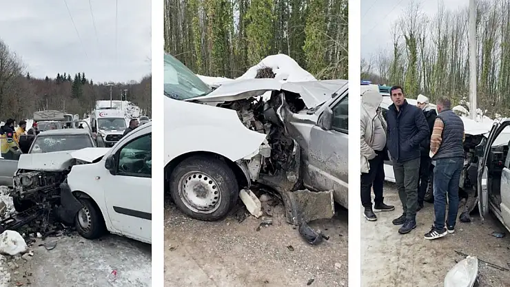 Düzce'de kamyonet ile hafif ticari aracın kafa kafaya çarpıştığı kazada 3'ü çocuk 7 kişi yaralandı.