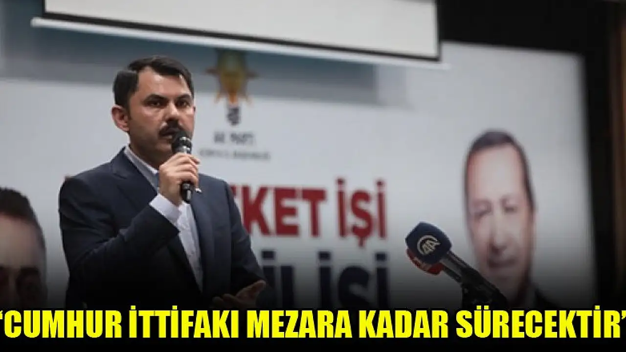 Çevre ve Şehircilik Bakanı Murat Kurum, 'Cumhur İttifakı'nı, 15 Temmuz gecesi bu vatan için, millet, bayrak için canını, kanını feda edenler birlikte kurmuştur. İnşallah bu birliktelik, Cumhurbaşkanımızın liderliğinde mezara kadar sürecektir' dedi.