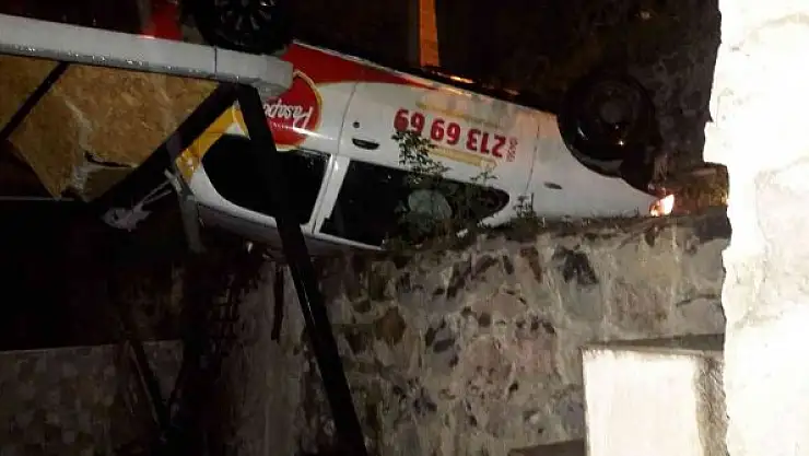 Gümüşhane'de siparişe giden kurye aracı 5 metrelik duvardan aşağıya düştü. Kazada 2 kişi yaralandı.
