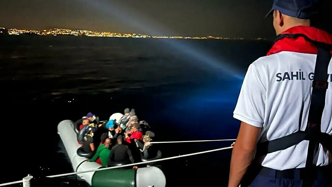 Aydın'ın Kuşadası ilçesinde, Sahil Güvenlik Ekipleri tarafından, gece yarısı lastik bot içerisinde 27 kaçak göçmen yakalandı.