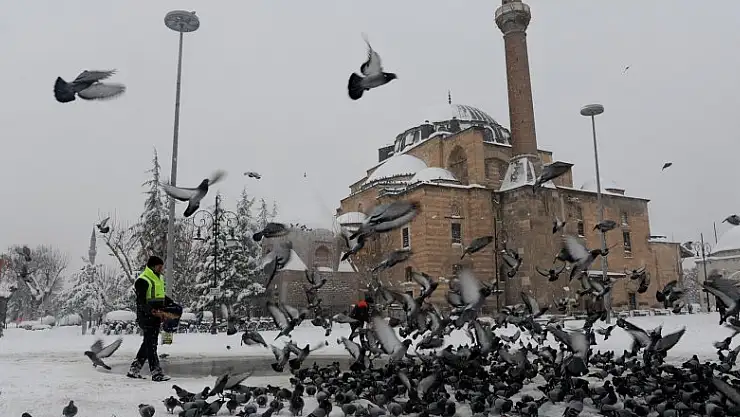 Konya Büyükşehir Belediyesi, yoğun kar yağışının ardından kuşlar ve sahipsiz hayvanların aç kalmaması için şehir merkezinde uygun yerlere yem bırakıyor.
