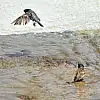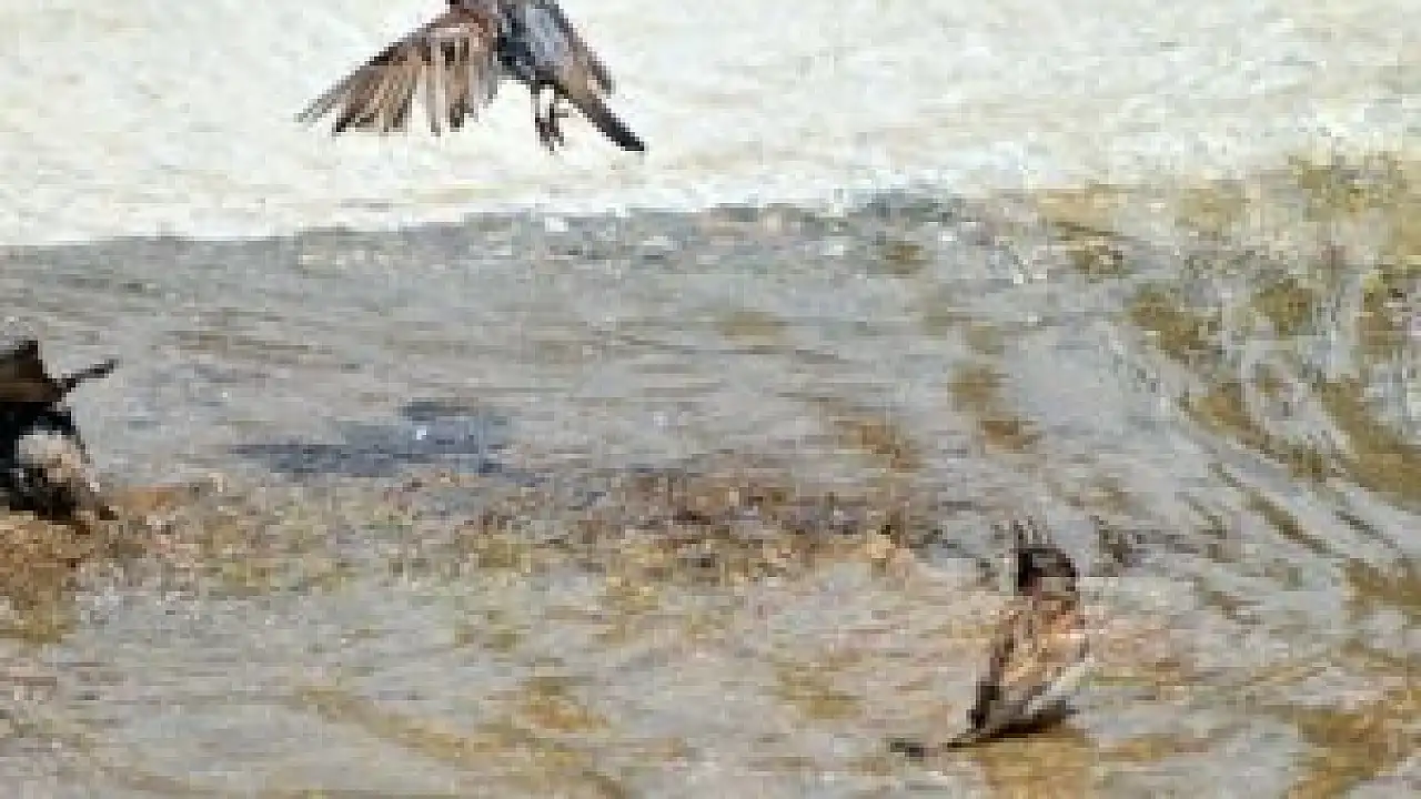 Hava sıcaklıklarının artmasıyla birlikte bunalan kuşlar, Akşehir deresinde banyo keyfi yaparak serinlemeye çalıştı.