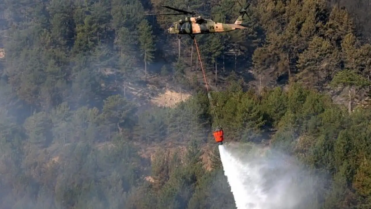 Bölgede 26 helikopter, 9 uçak, 78 arazöz, 8 dozer ve 800'e yakın personelle yürütülen çalışmalarla yangın kontrol altına alındı.