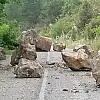 KÜTAHYA'nın Tavşanlı ilçesinde yağışlı havanın ardından tepelerden kopan kayalar karayoluna düşerek yolu kapattı.