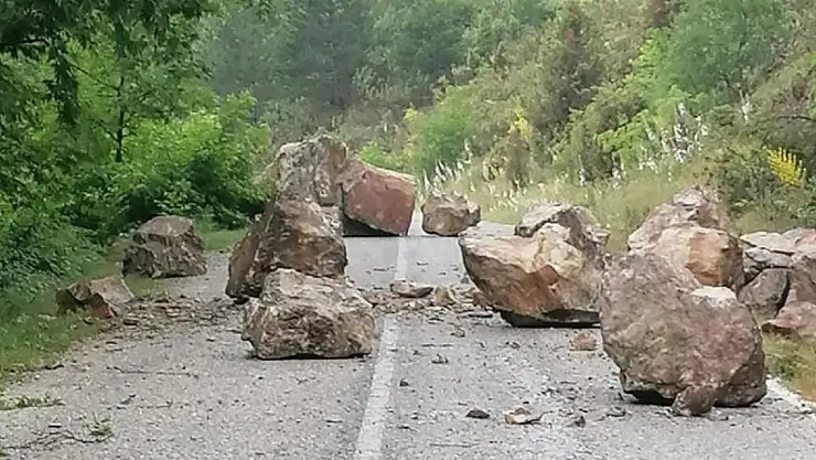 Tavşanlı ilçesi Çavdarhisar karayolu 21'nci kilometresinde sağanak yağışın ardından tepelerden kopan dev kayalar, yola düştü. Kayalar nedeniyle yolun trafiğe kapandığı bilgisi üzerine harekete geçen Jandarma ekipleri, yolda güvenlik tedbiri aldı. Karayolları ekipleri de dev kayaları iş makineleriyle parçalayıp yoldan kaldırdı. Yaklaşık 2 saat süren çalışmaların ardından yol yeniden trafiğe açıldı.