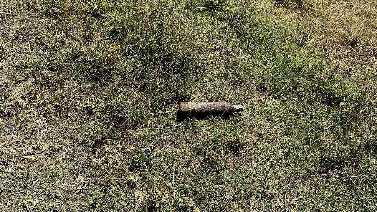 Kütahya'nın Dumlupınar ilçesinde, bir çoban tarafından tarlada Kurtuluş Savaşı döneminden kaldığı değerlendirilen patlamamış top mermisi bulundu. Ekipler, 102 yıllık mermiyi güvenli alana taşıyarak imha etti.