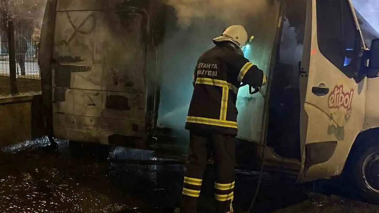 Kütahya'da park halindeki minibüs yandı