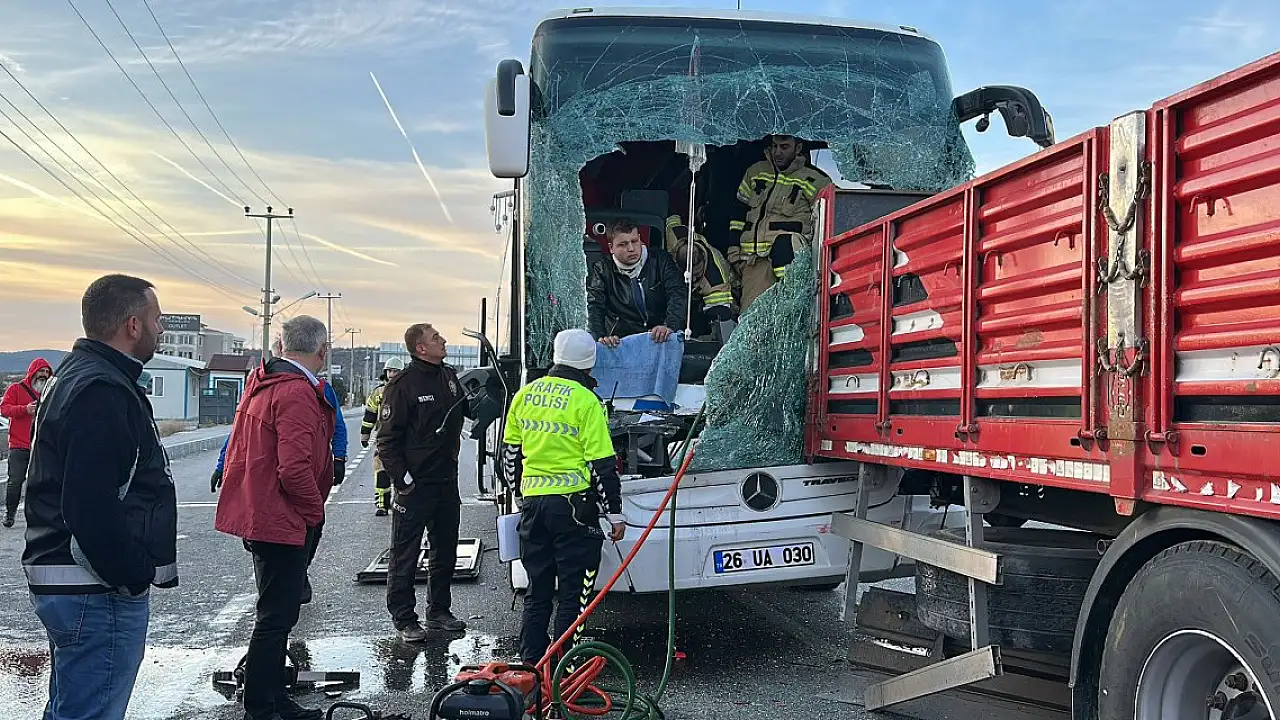 Kütahya'da yolcu otobüsü, kırmızı ışıkta durmak için yavaşlayan TIR'a arkadan çarptı. Kazada 13 kişi yaralandı.