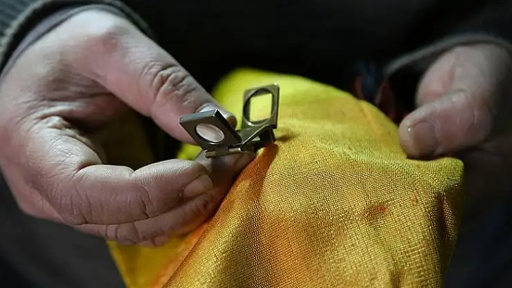 Gaziantep'te asırlara şahitlik eden gelenek kutnu dokumasında, kumaşın atkı ve çözgü sayılarını ölçmeye yarayan bakır mercek, yaklaşık bir asırdır ustadan ustaya emanet ediliyor.