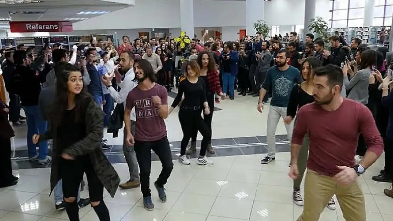 Avrupa'nın en zengin kütüphanesinden biri olduğu belirtilen SDÜ Kütüphanesinin "sessizliğini" iletişim fakültesi öğrencilerinin gerçekleştirdiği "Flashmoob" etkinliği bozdu.