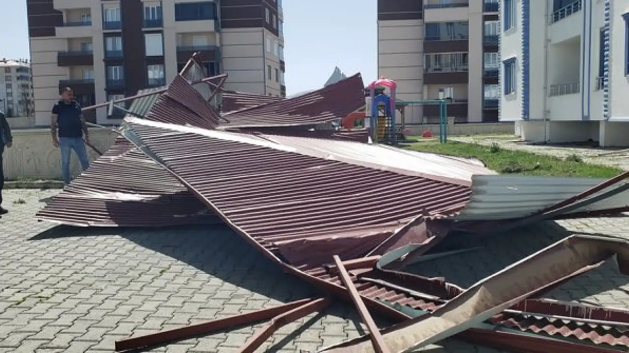 Kuvvetli rüzgarda çatı uçtu, araçlar hasar gördü