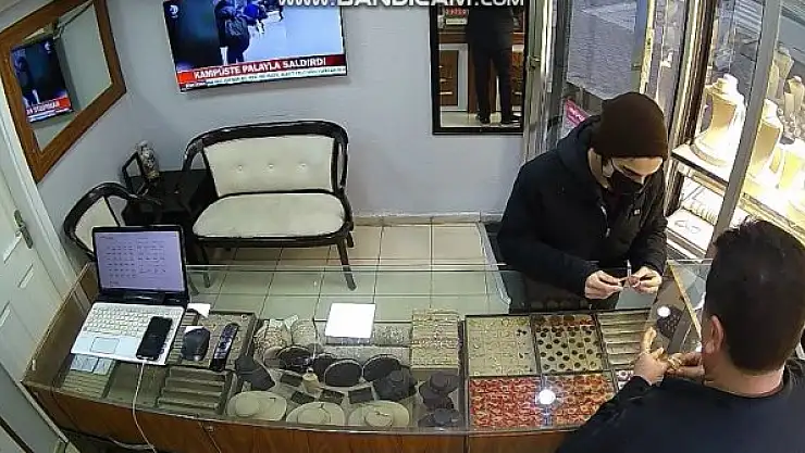 Öte yandan, kuyumcudan altın bileziklerin çalındığı anlar, iş yerinin güvenlik kamerasına yansıdı.