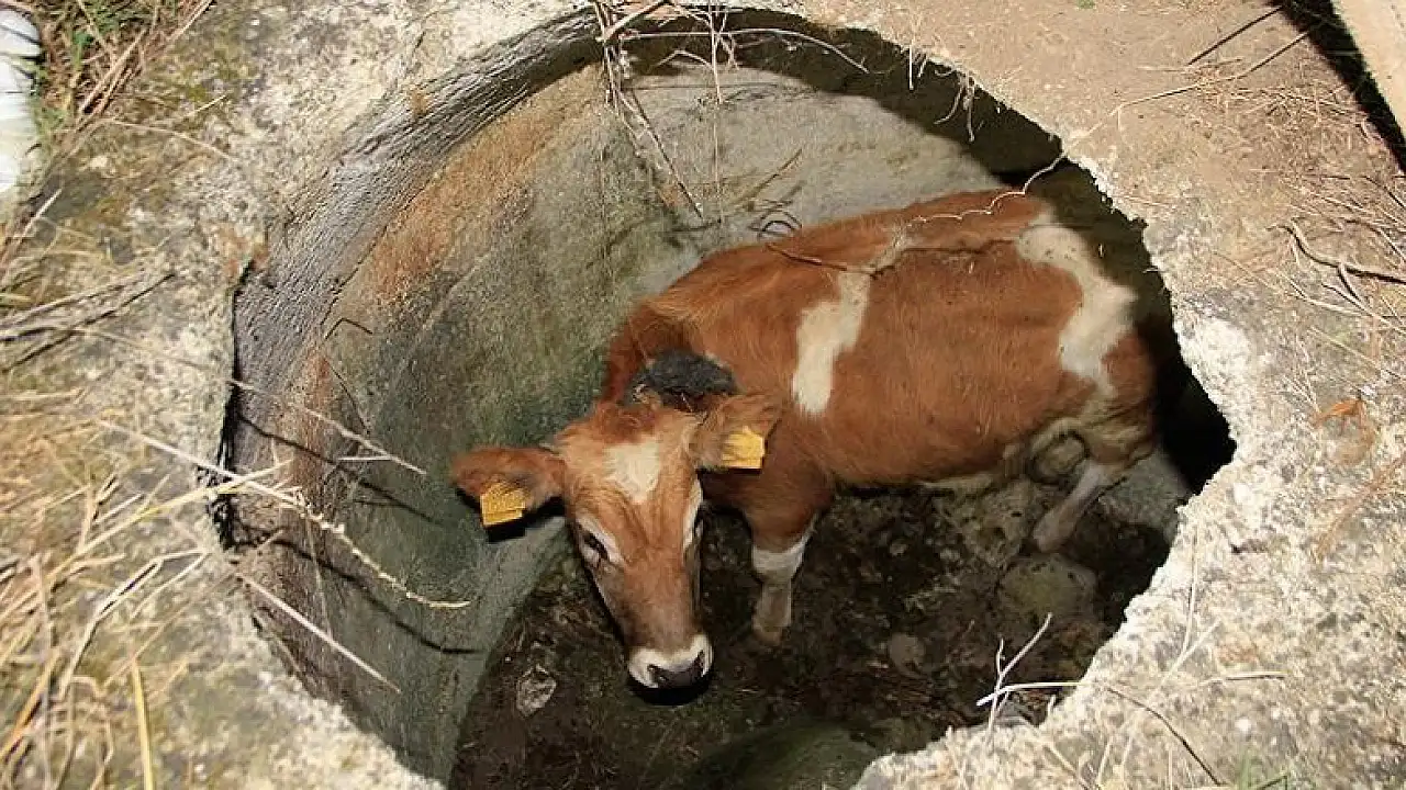 Kocaeli'nin Kartepe ilçesinde 3 metrelik kuyuya düşen dana, itfaiye ekiplerince kurtarıldı.