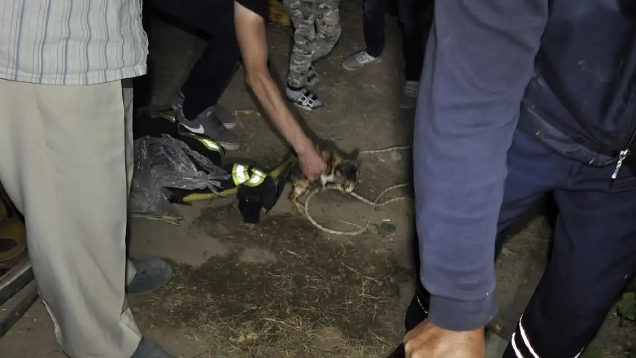 Olay, akşam saatlerinde Kızılcalar Mahallesi 153385. Sokak üzerinde bir bahçede meydana geldi. Edinilen bilgiye göre, sokak üzerinde bulunan bir bahçenin içerisindeki kuyudan kedi sesi geldiğini fark eden vatandaşlar ilk olarak kendi imkanları ile kediyi düştüğü kuyudan kurtarmaya çalıştı. Başarılı olamayan vatandaşlar durumu itfaiye ekiplerine haber verdi. Kısa sürede bahçeye gelen ekipler, kuyuya düşen kediyi kurtarmak için hazırlık yaptı ve ardından kuyu içerisine merdiven indirildi. Merdivenden kuyu içerisine inen itfaiye memuru, kuyudaki yavru olduğu anlaşılan kediyi bir kova içerisine alarak kurtardı. Yukarıya çıkartılarak yere bırakılan yavru kedi, bir süre sonra uzaklaştı.
