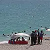 Öte yandan, sahilde bazı vatandaşların hiçbir şey olmamış gibi yüzmeye ve güneşlenmeye devam ettikleri görüldü.