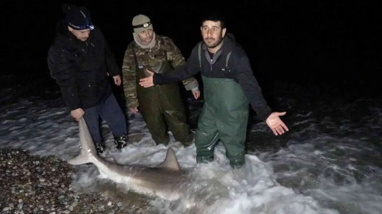 Kuzu balığı zannettiler oltayla 2 metrelik köpekbalığı çektiler