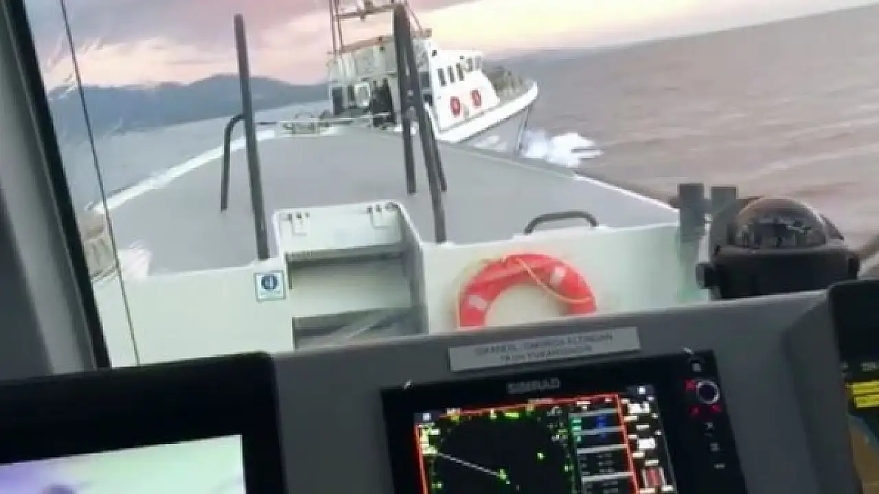 Anadolu a obtenu des scènes de la poursuite des garde-côtes turcs pour un bateau grec qui a tenté de forcer un groupe de réfugiés à retourner dans les eaux territoriales turques.