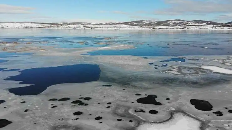 Samsun'un Ladik ilçesinde bulunan 870 hektarlık alana sahip Ladik Gölü, eksilere düşen hava sıcaklığı nedeniyle buz tuttu.