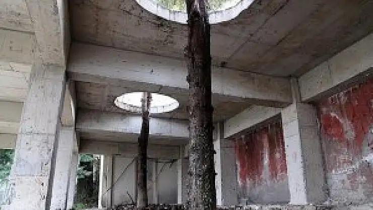 Rize'de Atatürk Çay ve Bahçe Kültürleri Araştırma Enstitüsü merkezinde çay evi inşaatı alanında bulunan 20 yıllık iki mavi ladin, uygulanan proje ile yapılan binanın içinde bırakılarak kesilmekten kurtarıldı.