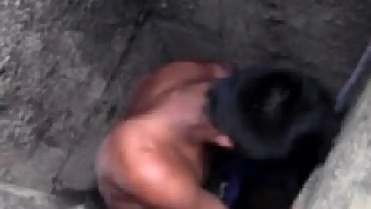 Hayatını hiçe saydı, lağım kuyusuna düşen köpeği kurtardı.