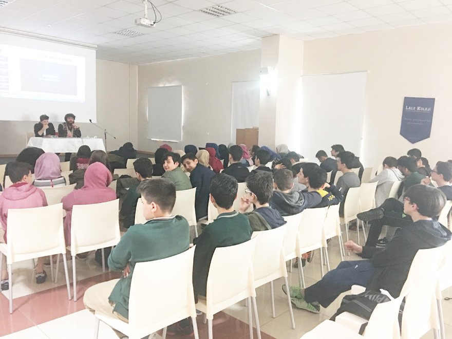 Genç yönetmenler Ömer Sevinç ve Ozan Yunus Engin, Özel Lale Koleji 9.Sınıf öğrencilerine kısa film yapma ve senaryo hazırlama üzerine konferans verdi.