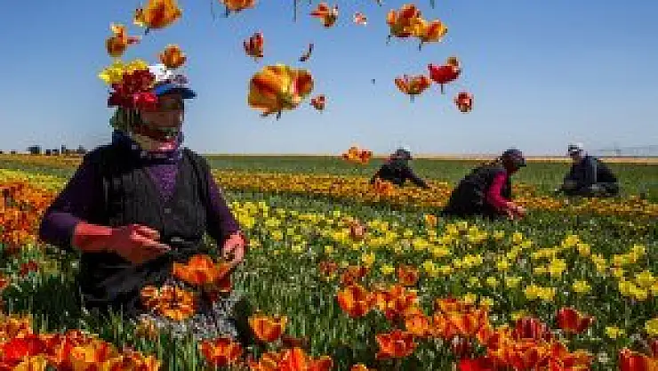 Çocuğunu sırtına sararak sabahın ilk ışıklarıyla tarlaya koşan kadınlar, birçok şehrin cadde, sokak ve meydanlarında renk cümbüşü ile görsel şölen sunan lale üretiminde çalışarak, evine ekmek götürüyor.