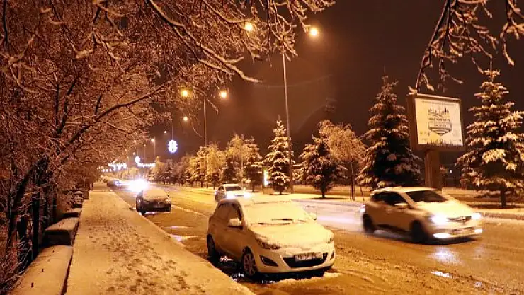 ERZURUM'da akşam saatlerinde lapa lapa yağan kar, sıcak hava nedeniyle kısa sürede sele dönüştü. Kent merkezi yeniden beyaza bürünürken yollar göle döndü. Belediye ekipleri karla kaplanan ızgaraları temizleyerek suları çekmeye çalıştı.