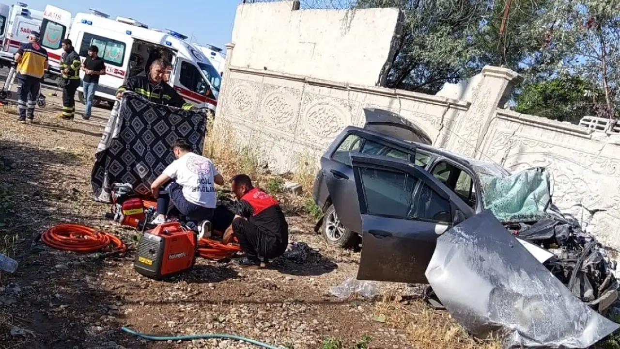 Diyarbakır'ın Bismil ilçesinde lastiği patlayan otomobilin akaryakıt istasyonunun istinat duvarına çarptığı kazada Gazal Kayıhan (59) öldü, 6 kişi yaralandı.