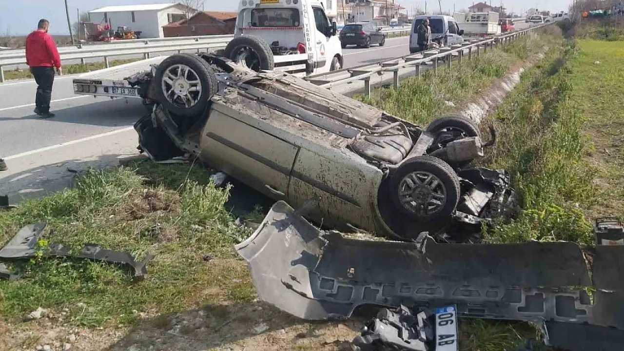Lastiği patlayan otomobil takla attı, yaralılar var