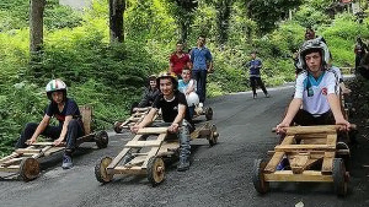 Rize'nin Çamlıhemşin ilçesine bağlı Dikkaya köyünde 4 yıldır Ramazan Bayramı'nın neşeli geçmesi için düzenlenen ve ilginç görüntülere sahne olan tahta araba yarışları "Lazi Ralli"ye bu yıl gençlerin yanı sıra yaşlılar da katıldı.