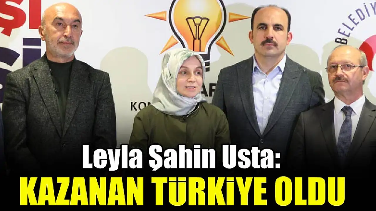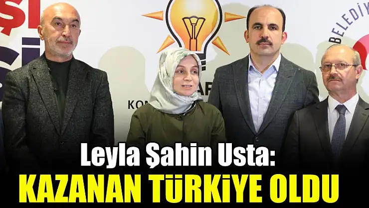 AK Parti Genel Başkan Yardımcısı Leyla Şahin Usta 31 Mart seçim sonuçlarını değerlendirdi. Sonuçların Konya'ya ve Türkiye'ye hayırlı olmasını dileyen Usta, 'Burada kazanan Türkiye'dir' ifadelerini kullandı.