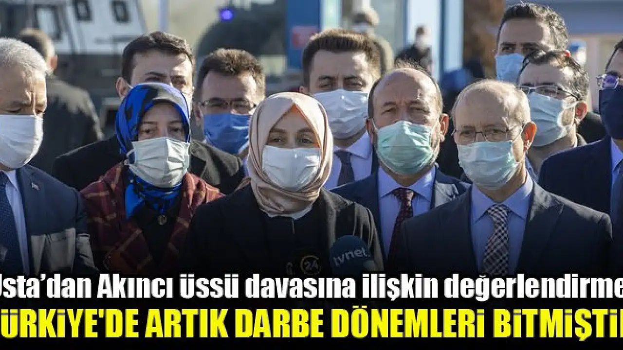 AK Parti Genel Başkan Yardımcısı Leyla Şahin Usta, Akıncı Üssü darbe girişimi davasında hükmün açıklanmasının ardından duyduğu memnuniyeti ifade ederek 'Türkiye'de artık darbe dönemleri bitmiştir.' dedi.