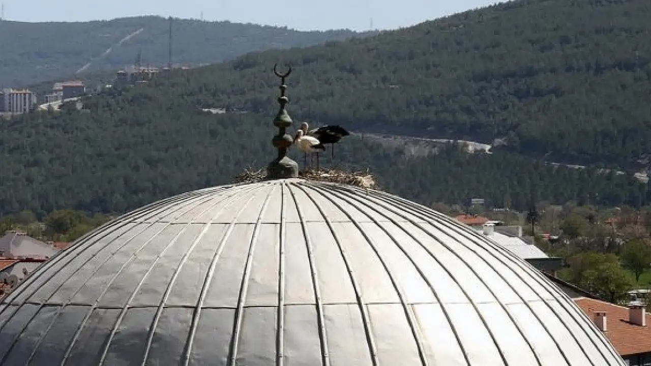 Leylekler 20 yıldır aynı kubbeye yuva kuruyor