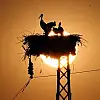 Bölgedeki elektrik direklerinde konan leylekler, akımın geçtiği tellere zarar verdiği için bölgede sık sık enerji kesintileri yaşanıyor.