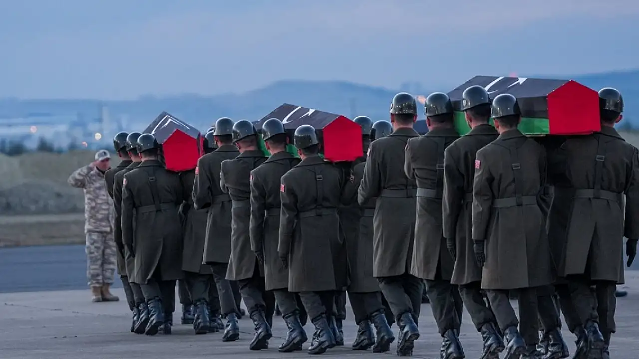 Ankara’da havalandıktan kısa süre sonra düşen uçaktaki Libya Genelkurmay Başkanı Orgeneral Muhammed Ali Ahmed El Haddad, Libya Kara Kuvvetleri Komutanı Korgeneral Futuri Gribel, Askeri Fabrikalar Genel Müdürü Tuğgeneral Mahmut Cuma El Giteviy, Genelkurmay Başkanı Danışmanı Muhammed El Assavi Diyab ve bakanlık fotoğrafçısı Muhammed Ömer Ahmed Mahcub’un naaşları Adli Tıp Kurumu’ndaki işlemlerin ardından Mürted Hava Meydan Komutanlığı’ndaki tören alanına getirildi.