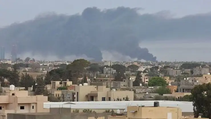 Libya'nın doğusundaki gayrimeşru silahlı güçlerin darbeci lideri Halife Hafter'e bağlı milisler, Ramazan Bayramı sabahında başkent Trablus'taki Mitiga Havalimanı'nı bombaladı.