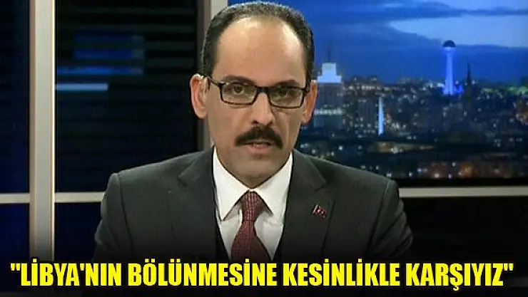 CNN televizyon kanalına açıklamalarda bulunan Cumhurbaşkanlığı Sözcüsü Kalın, ''Biz Libya'nın haritada, siyasi ya da coğrafi bölünmesine kesinlikle karşıyız. Bu felaket bir senaryo olur. Irak'ta, Suriye'de ve diğer yerlerde örneklerini gördük ve bunlardan ders almalıyız.'' ifadelerini kullandı.