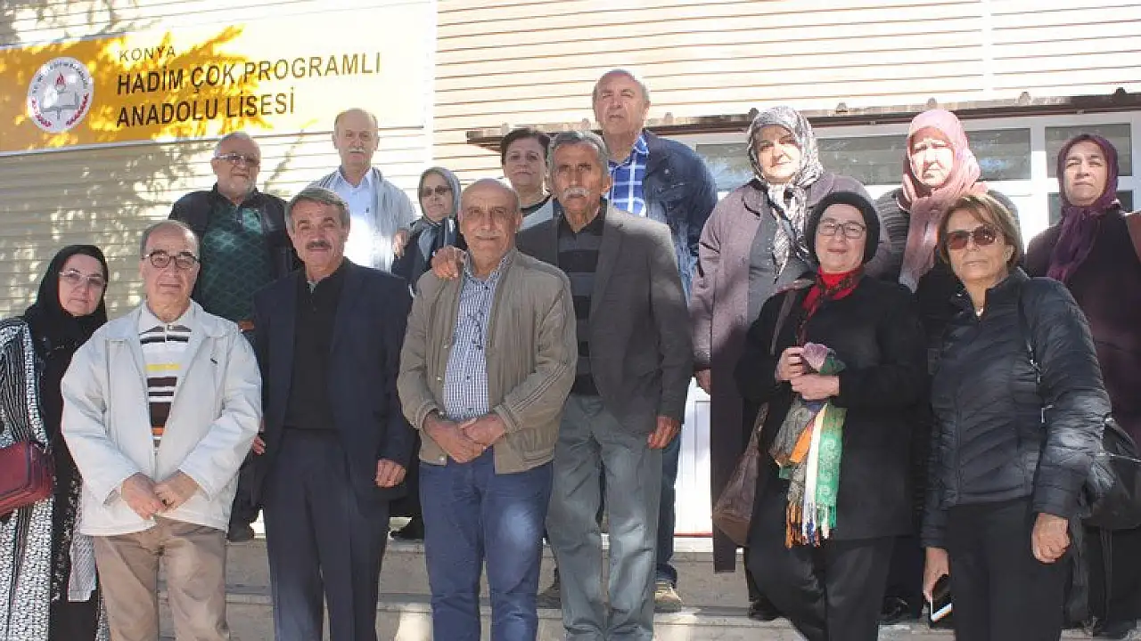 Hadim Lisesi'nden 1978 yılında mezun olanlar, 40 yıl sonra aynı okulda buluştu. Hadim Çok Programlı Anadolu Lisesi adı altında eğitim veren okuldaki buluşmaya gelen, Türkiye'nin dört bir yanında farklı mesleklere sahip arkadaşlar, anılarını tazeledi. O dönem Türkçe dersine giren öğretmenleri Ahmet Kabayel ile matematik öğretmeni Mahmut Özdemir de eski öğrencilerini yalnız bırakmadı. Kendi sıralarına oturan mezunlara, öğretmenleri de ders anlattı. Birlikte hatıra fotoğrafı çektiren eski öğrenciler, bol bol sohbet edip eski günleri yâd etti.