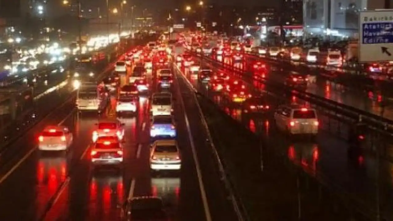 İSTANBUL'da lodos ve yağmurun etkisiyle iş çıkış saatlerinde trafik yoğunluğu yüzde 85 olarak ölçüldü.