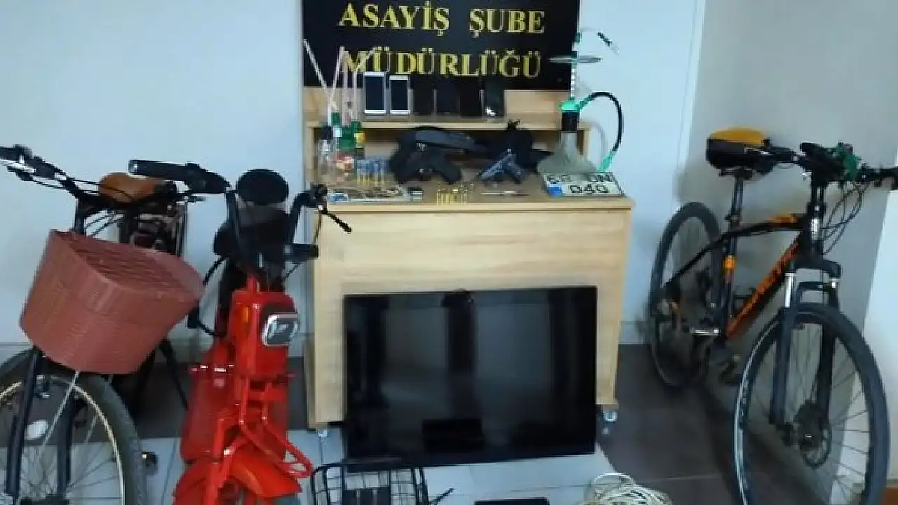 Olay, pazar günü Büyük Bölcek Mahallesi'ndeki bir lokantada meydana geldi. Lokantanın kapı kilidini kırarak içeri girin hırsızlık şüphelisi, buradaki motosikleti çalıp götürdü. İhbar üzerine çalışma başlatan polis ekipleri, güvenlik kameralarından hırsızlık yapan şüphelinin Cengizhan D. olduğunu belirledi. Cengizhan D.'nin Küçük Bölcek Mahallesi'nde oturduğu tespit edildi. Operasyon düzenleyen ekipler, Cengizhan D.'yi çaldığı motosikletle gezmek için evden çıkarken yakaladı. Evde yapılan aramada 2 bisiklet, 2 elektrikli bisiklet, 6 cep telefonu 1 tabanca ile 1 tüfek ele geçirildi.