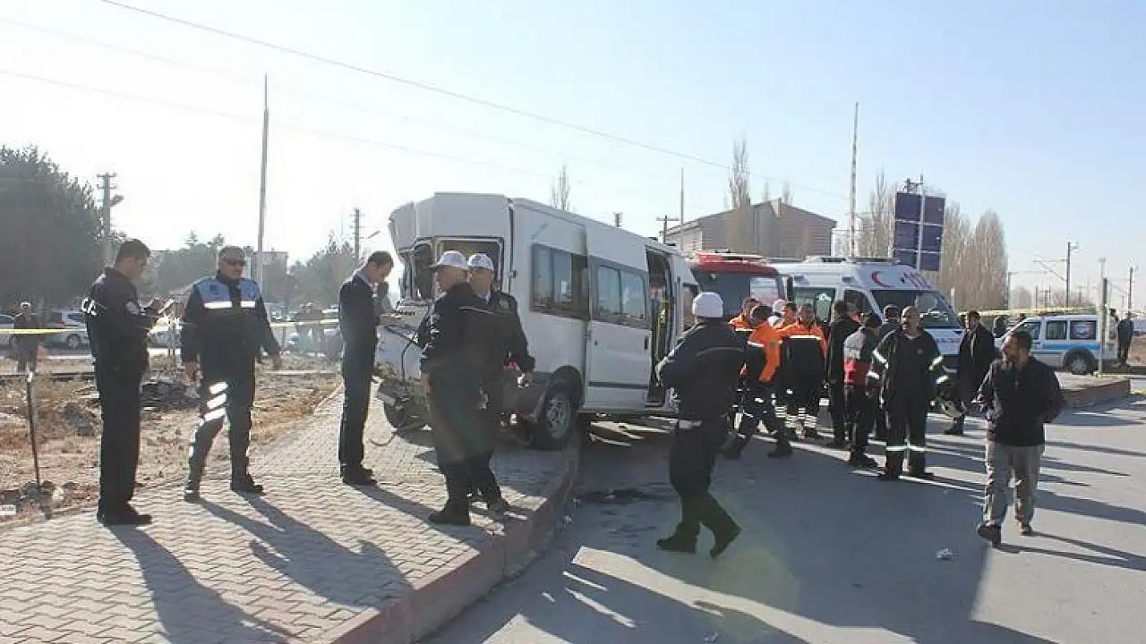 Niğde'de tren lokomotifinin öğrenci servisiyle çarpışması sonucu 6'sı çocuk 14 kişi yaralandı.