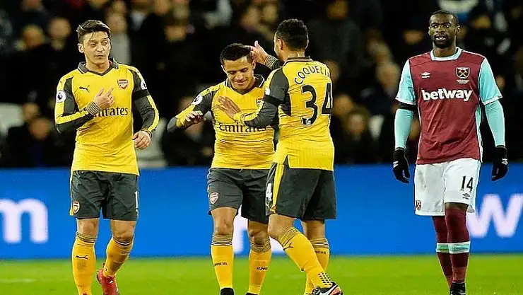 Mesut Özil'in birer gol ve asistle oynadığı maçta Arsenal, deplasmanda West Ham United'ı 5-1 mağlup etti.