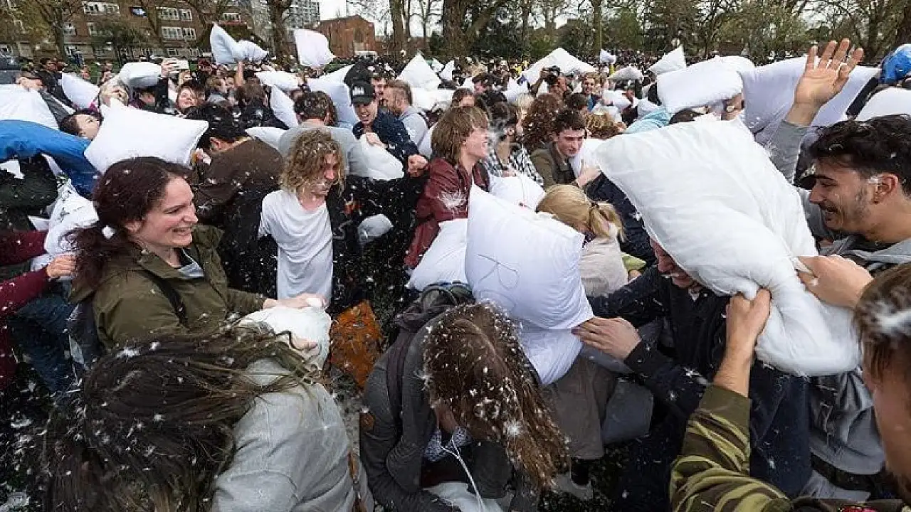 Londra'da 'yastık savaşı' yapıldı