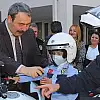 Ekip aracına ve motosiklete bindi