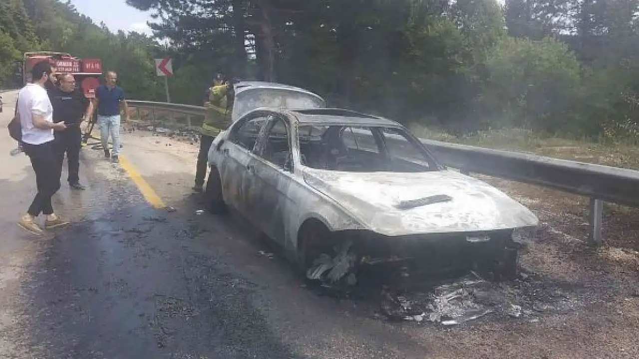 Yanarak demir yığınına dönen otomobil ise çekici yardımı ile olay yerinden kaldırıldı.