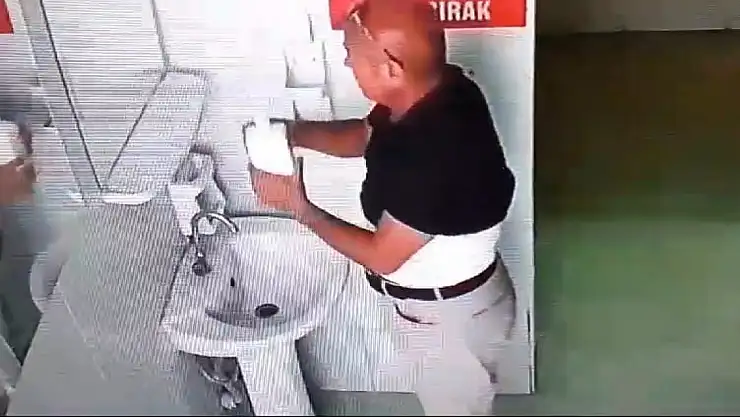 Amasya'nın Suluova ilçesinde, lüks otomobiliyle mahalleye gelen kişi, caminin tuvaletini girdikten sonra sabunluğu çaldı. Hırsızlık, güvenlik kamerasına yansıdı.