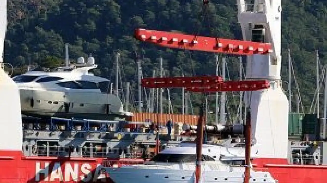 Marmaris ilçesinde bazı yatlar, kış mevsiminin gelmesiyle birlikte kargo gemileriyle bağlı oldukları yurt dışındaki limanlara gönderiliyor.