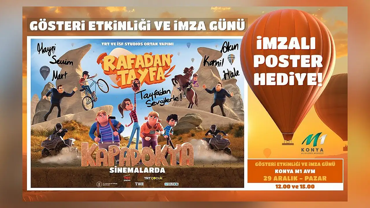M1 Konya Alışveriş Merkezi, ailece keyifli vakit geçirilebilecek etkinlikleriyle Konya'nın vazgeçilmez adresi olmaya devam ediyor. Rafadan Tayfa Kapadokya filmi, gösteri ve imza günüyle 29 Aralık'ta hayranlarını M1 Konya'da ağırlayacak.