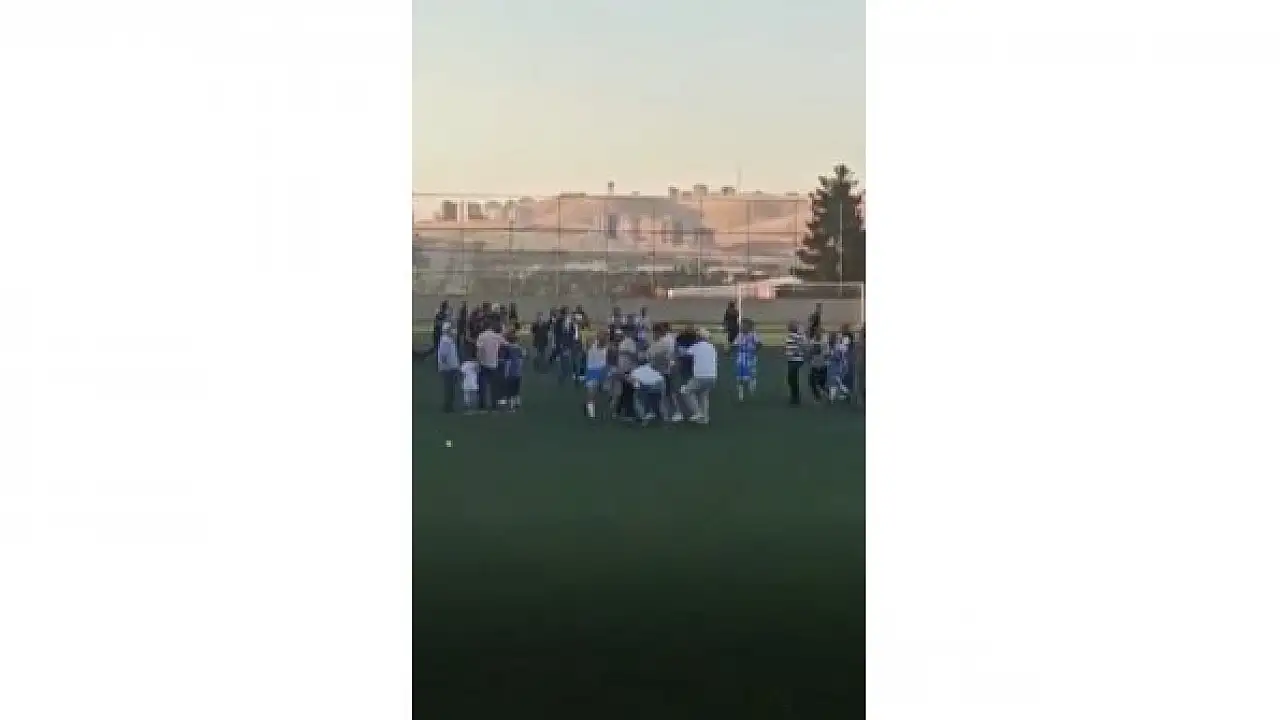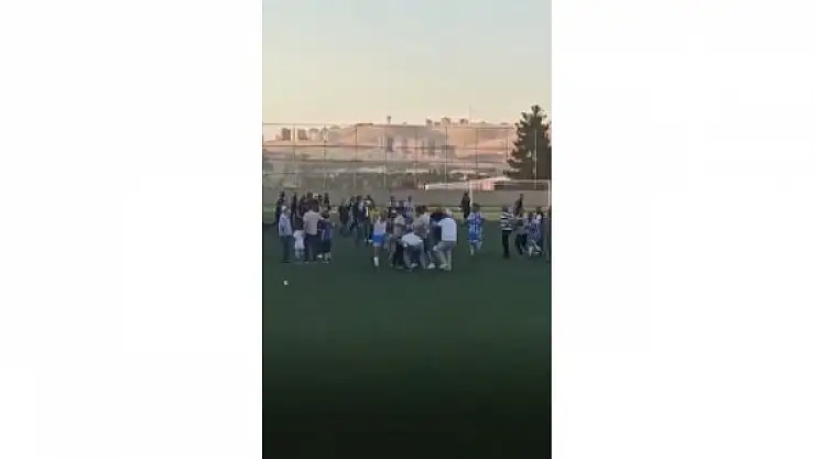 Gaziantep'te düzenlenen Barak Bahar Turnuvası'nın yarı final maçının bitimiyle futbolcular birbirine girdi. Adeta ringe dönen sahadaki olayları görüntüleyen bir kişinin futbolculardan meydan dayağı yemesi kameraya yansıdı.