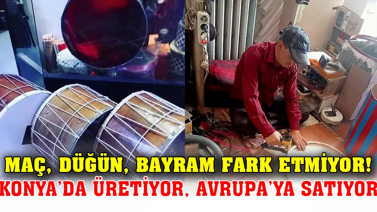 Konya'da davul imalatı yapan davulcu, senelerce darbuka, davul çalarak kullandığı enstrümanların tamirini öğrenip ve yaklaşık 10 yıldır davul imalatıyla geçimini sağlıyor.